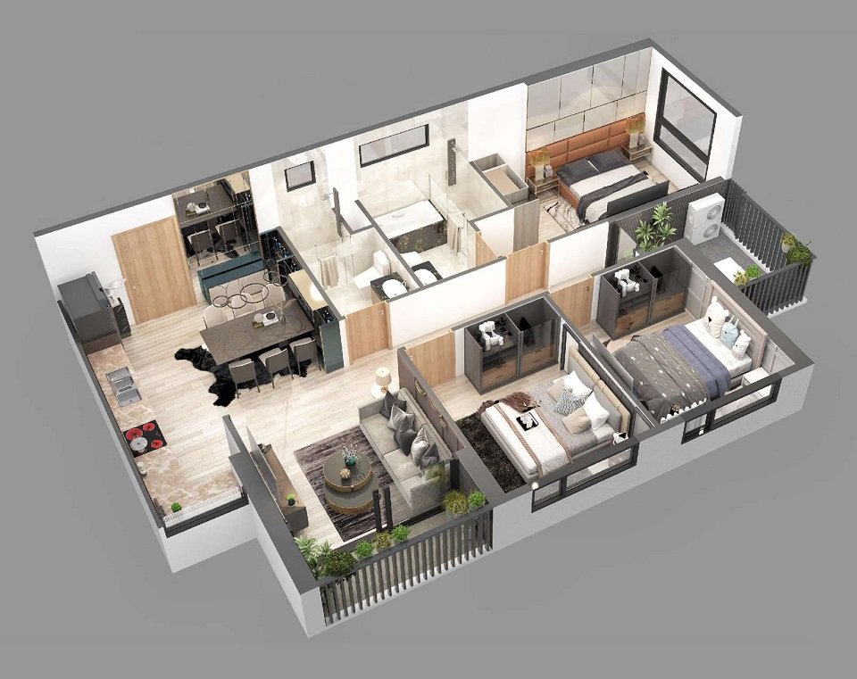 Tất cả căn hộ đều được thiết kế nhằm tối ưu ánh sáng, thông gió và tầm nhìn hướng sông – hồ – cảnh quan xanh đặc trưng Ecopark.