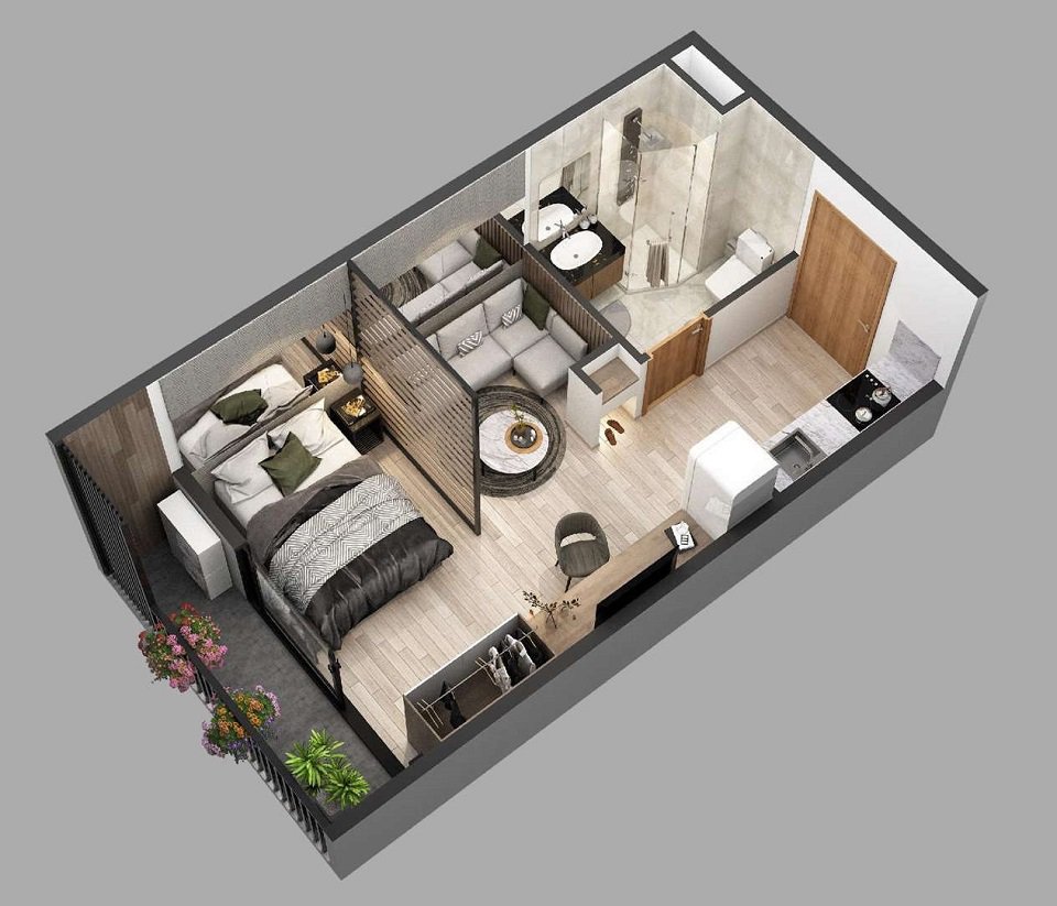 Studio đến 3 phòng ngủ: 30 – 97m²